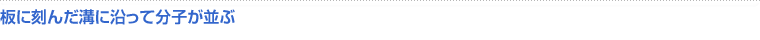 一定方向の溝を刻んだ板に液晶分子を接触させると、溝に沿って並び方を変えます。