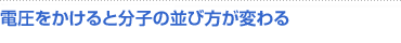 液晶は、電圧をかけるなどの外からの刺激によって、簡単に分子の並び方が変わります。電圧がかかると分子は垂直方向に並び方を変えて(電界に沿って)並びます。光は分子の並びに沿って、直進します。