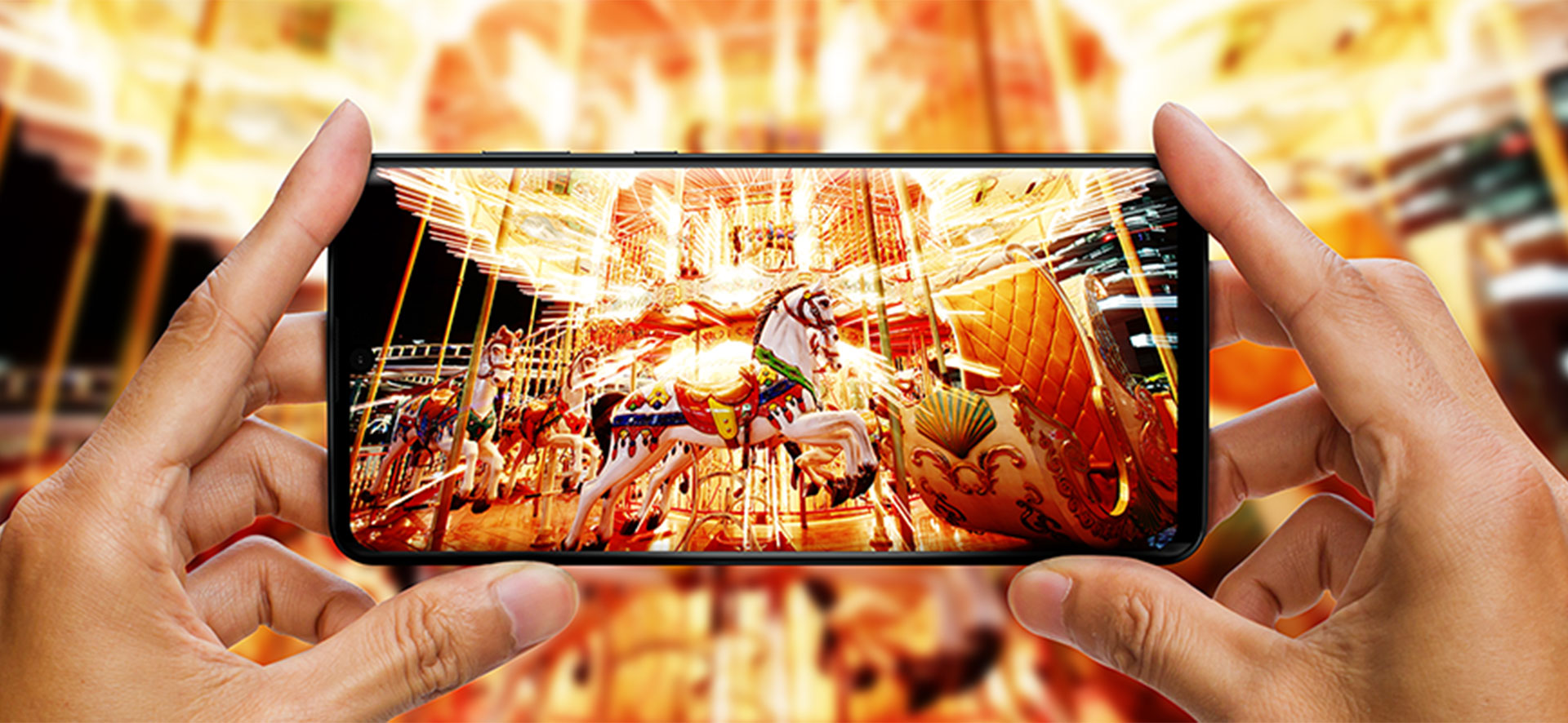 薄暗いシーンでも、ノイズを抑えてキレイに撮れる超広角&高画質カメラ。電子式と光学式のW手ブレ補正で動きながらでもしっかりブレを抑えます。