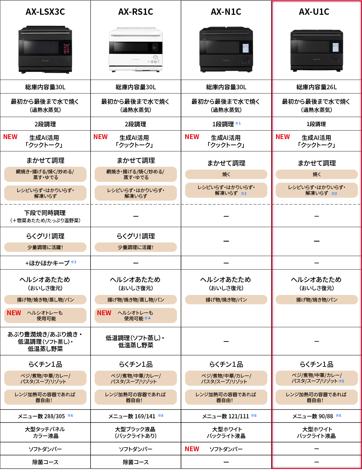 - ※4AX-RS1Cは揚げ物/焼き物/パンのみ