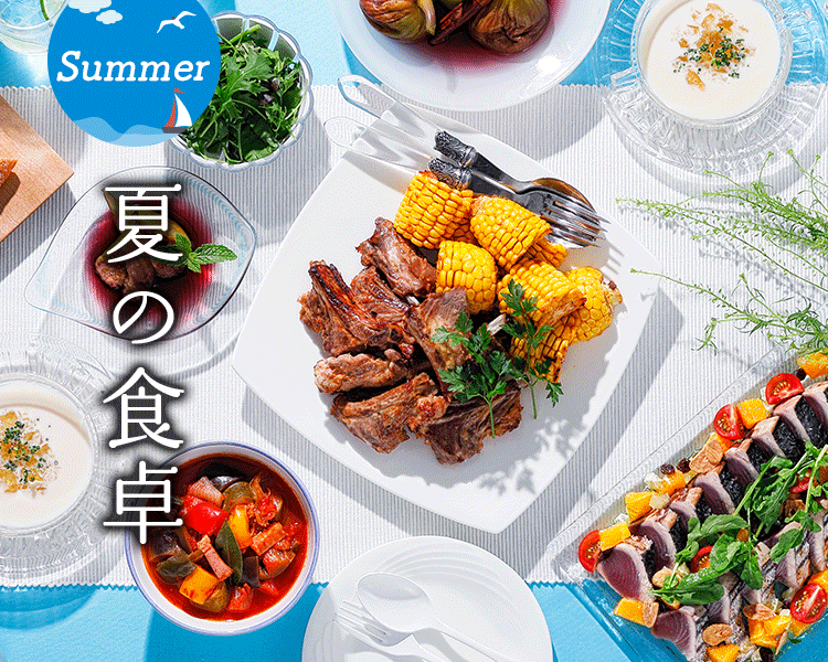 お肉料理がテーブルのセンターにど〜んとあると、華がありますよね。夏なら豪快に骨つき肉がおすすめ。手でそのまま持ってかぶりつけば、大人も子供も思わず笑顔に。前日からタレに漬け込んでおけば、当日はヘルシオにおまかせでできるのも、うれしいポイントですね。