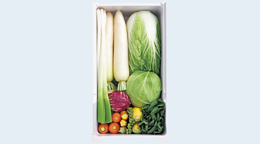 雪国で野菜を雪の下に置いて長期間保存するように、冷凍室に囲まれた独自スタイルを活かして野菜室を冷却。低温・高湿環境で鮮度を守りながら、甘味成分がアップします。