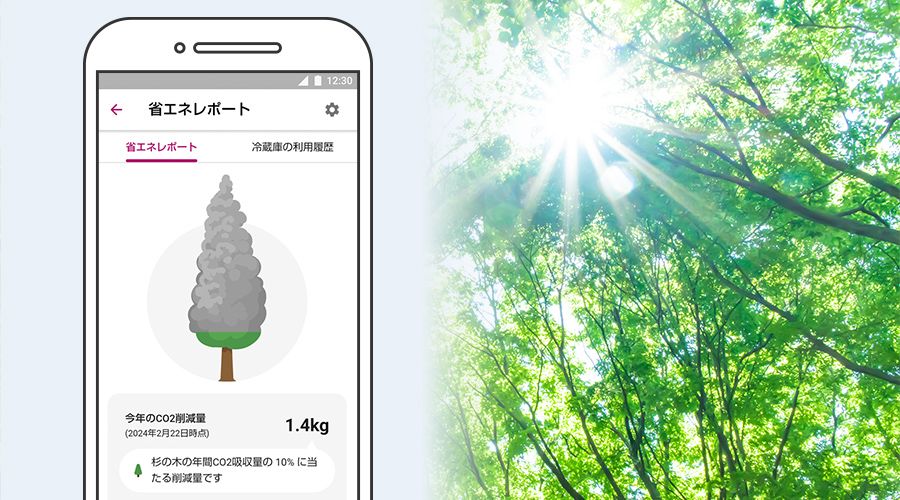 ご家庭でどのぐらい省エネしたのかをスマホで確認OK。CO₂の削減量を数値で示すので、環境への貢献度もより意識しやすくなります。