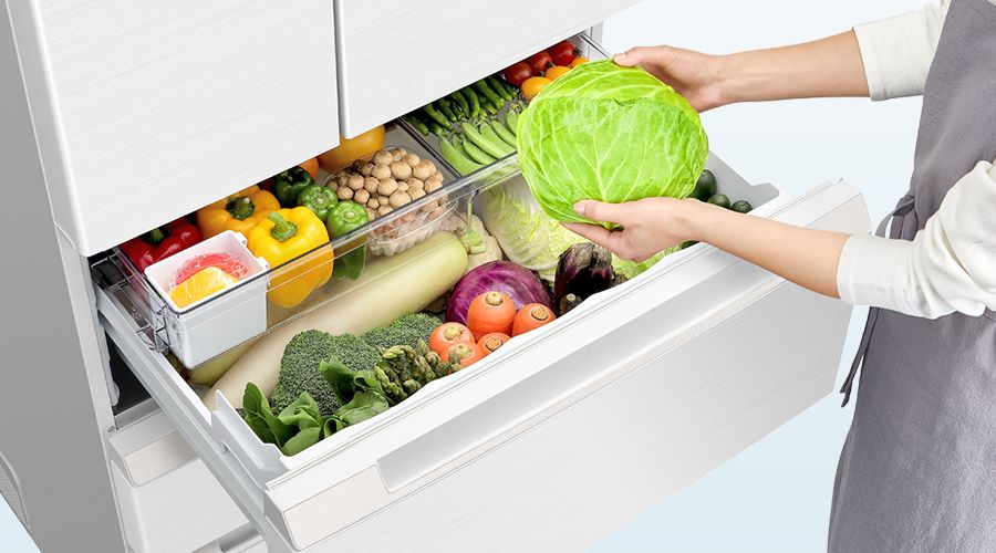 食品の出し入れがしやすい、真ん中レイアウトの野菜室