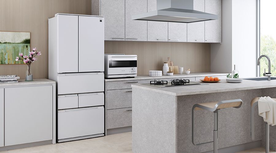 奥行き薄型だから冷蔵庫が出っ張らず美しいキッチンに。作業スペースにも余裕が生まれ、キッチンに2人で立った時もじゃまにならず、快適に作業ができます。