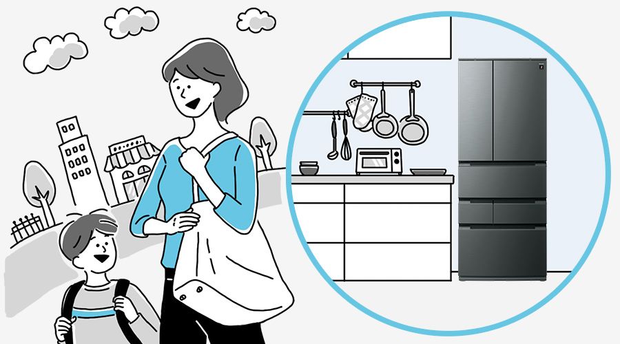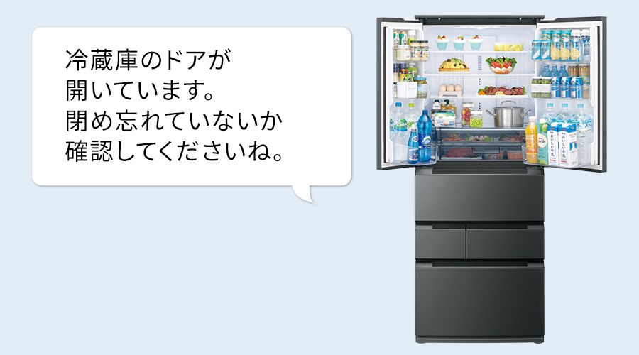 ドアを閉め忘れた時も、アラート音に加え、音声でもお知らせ。閉め忘れを手厚くサポートすることで、電気のムダ使いを抑えます。