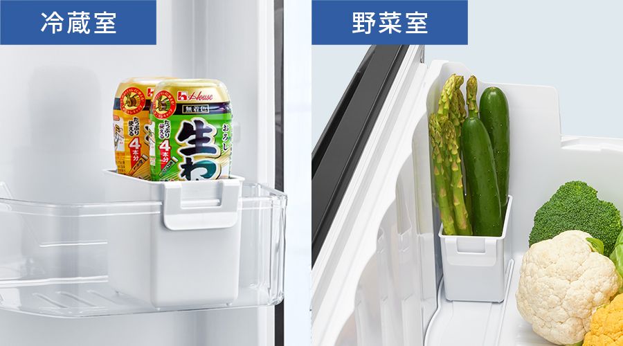 お刺し身やハム・チーズなどの乾燥にデリケートな食材は上段の「うるおいチルド」で、肉・魚などの生鮮食品や惣菜は、下段の「低温作りおきルーム」で鮮度をキープ。