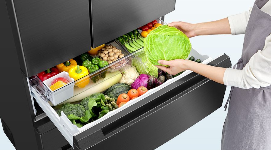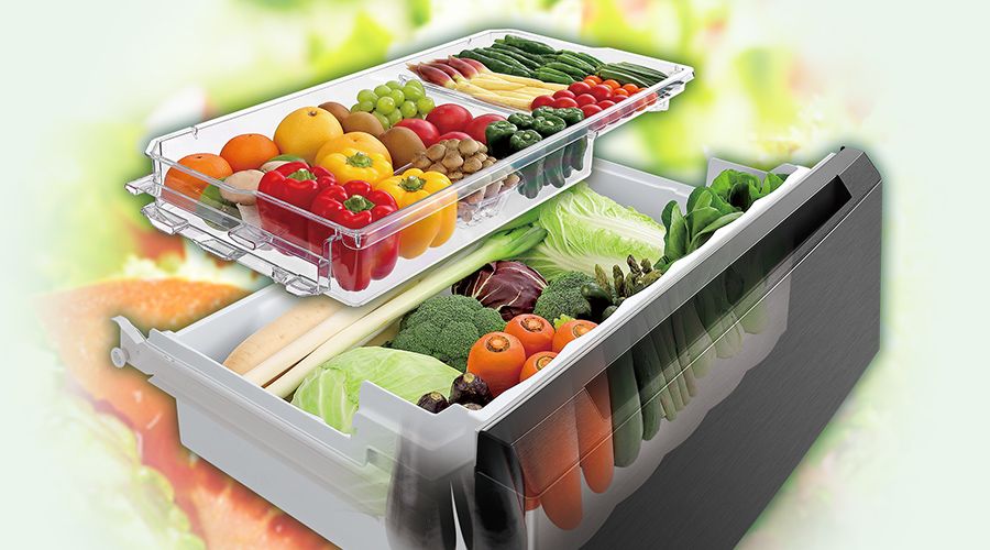 食品の出し入れがしやすい、真ん中レイアウトの野菜室