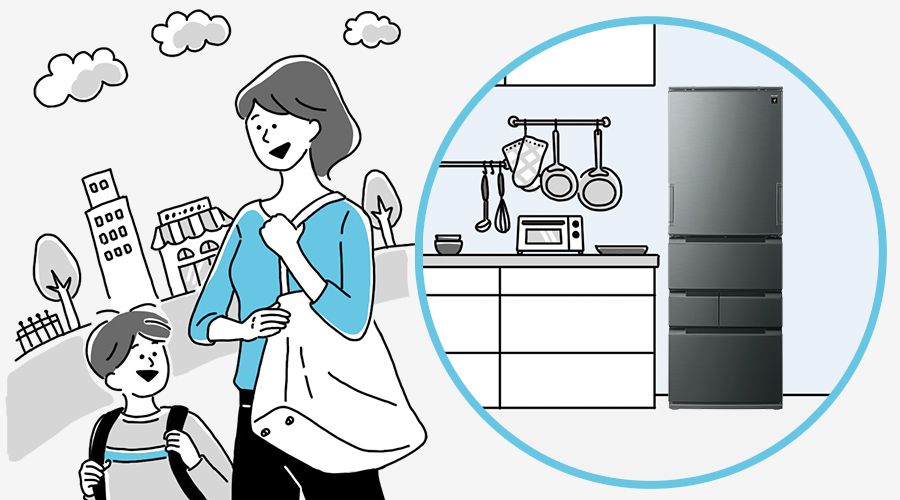 ドアを閉め忘れた時も、アラート音に加え、音声でもお知らせ。閉め忘れを手厚くサポートすることで、電気のムダ使いを抑えます。