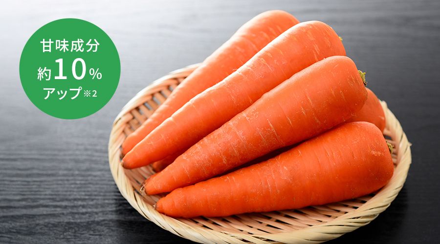 ニンジンを7日間、低温(約2~7℃)で保存することで甘味成分が約10%アップ※2します。