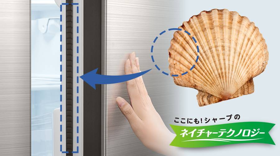 「センターピラー*」を必要としない独自構造で、電気のムダを抑えます。(ネイチャーテクノロジーホタテ貝ドアパーツ(ホタテ貝の凹凸形状)採用。)