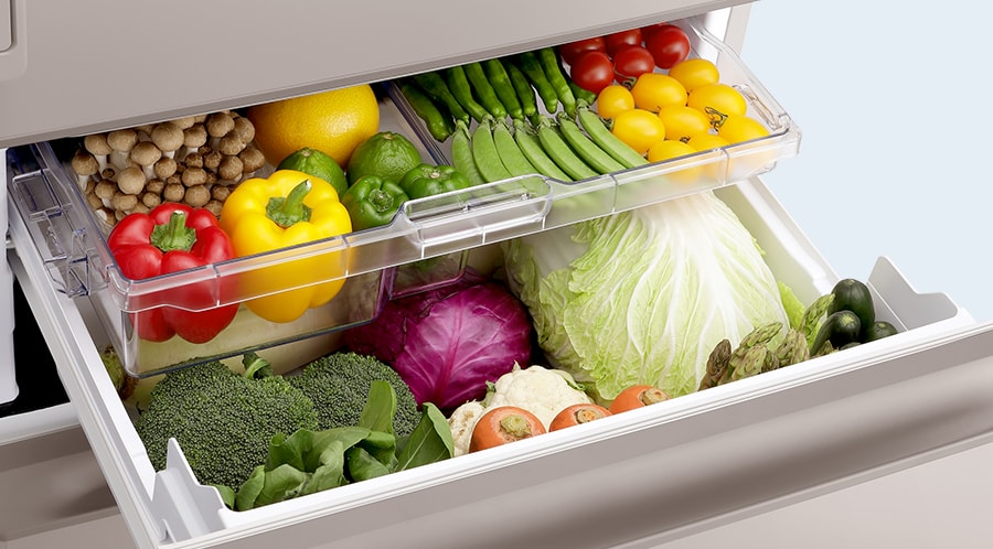 食品の出し入れがしやすい、真ん中レイアウトの野菜室