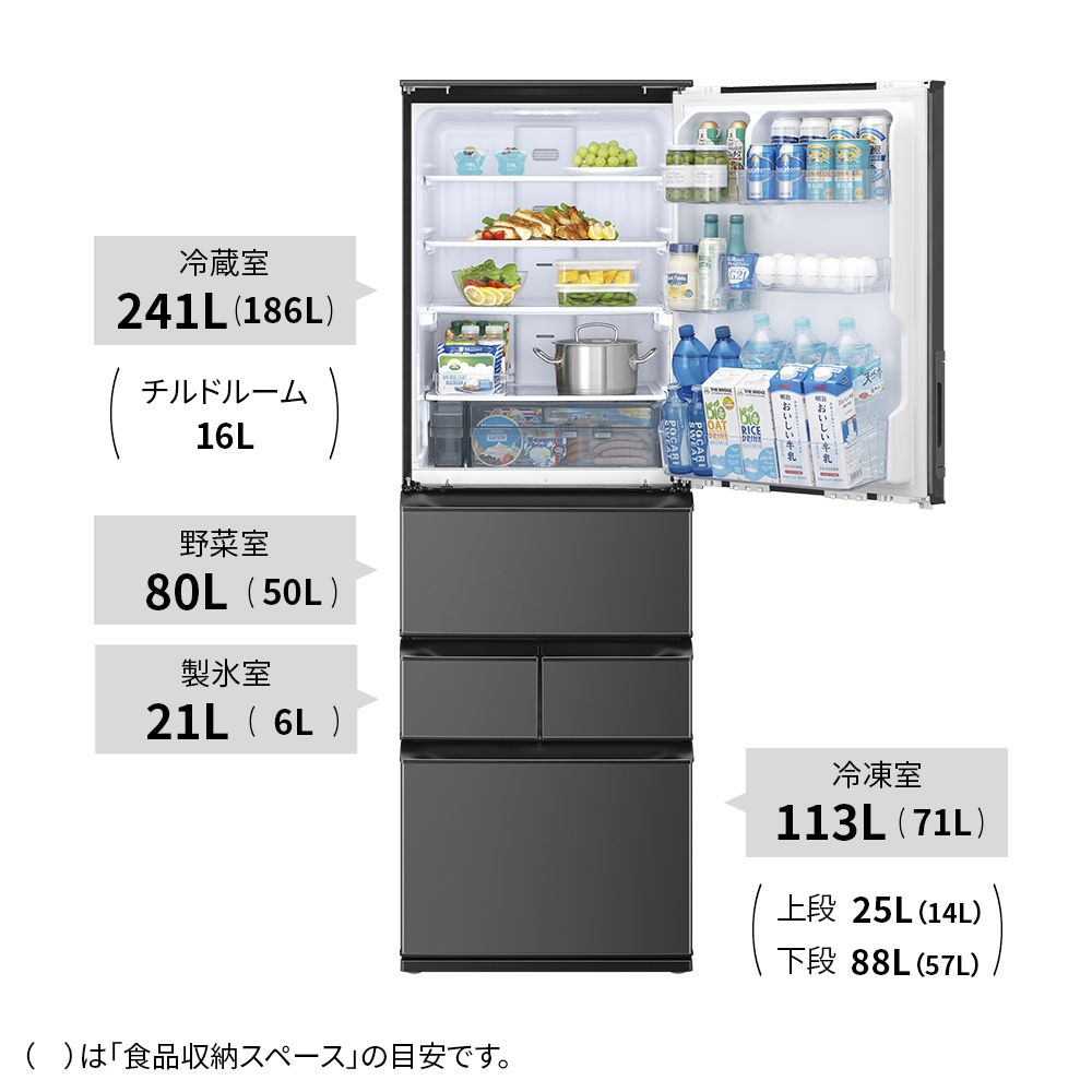 - ※1定格内容積は、日本産業規格(JIS C 9801-3:2015)に基づき、庫内の温度制御に必要でない庫内部品(棚やケース等)を外した状態で算出したものです。
