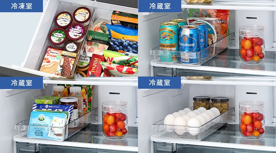 冷蔵室や冷凍室で、よく使う食材をまとめてすっきり収納できます。
