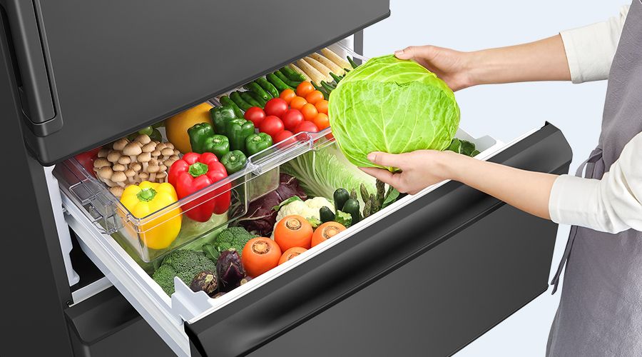 野菜の出し入れがしやすい、真ん中レイアウトの野菜室