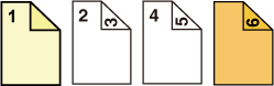 ![]() 原稿の1枚目を表表紙に片面コピーして、原稿の5枚目と6枚目は裏表紙に両面コピーします。 |