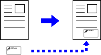 「日付」、「スタンプ」など、原稿にない情報をコピーに印字します。印字できる情報は次の6種類です。