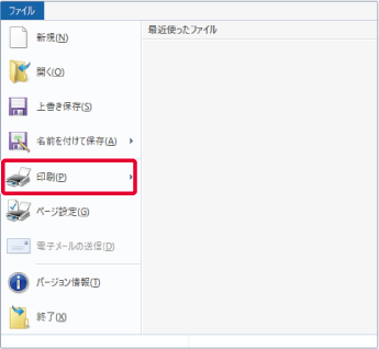 ワードパッドの[ファイル]メニューから [印刷]を選択する
