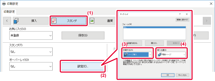 表紙と裏表紙だけ厚紙にプリントしたいときや、指定したページに色紙など別の用紙を挿入したいときに使用します。