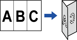 たとえば、封筒に入るサイズになるように、用紙を3つに折ります。1枚ずつ排紙します。 |