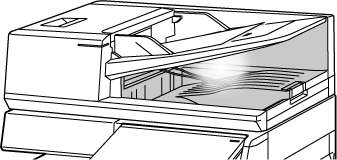 原稿の取り忘れを防ぐために、原稿自動送り装置には、原稿出紙部の上部にランプが設置されています。
