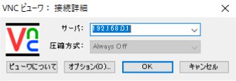 VNCビューワを起動し、「サーバ」の入力欄に本機のIPアドレスを入力して[OK]ボタンをクリックする