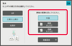 原稿に合わせて、[片面]キー、[両面よことじ]キーまたは[両面たてとじ]キーをタップする