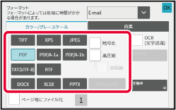 (BP-C533WDまたはBP-C533WRでOCR機能拡張キット装着時で[PDF]選択時のみ)OCRを有効にするときは、[OCR(文字認識)]チェックボックスを