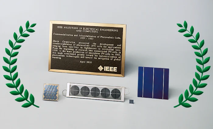 電気・電子・情報分野における世界最大の学会IEEE※10より、当社の1959年から1983 年にかけての灯台用・宇宙用から住宅用に至る、太陽電池の商業化と産業化への取り組みが評価され、「IEEE マイルストーン※11」に認定されました。