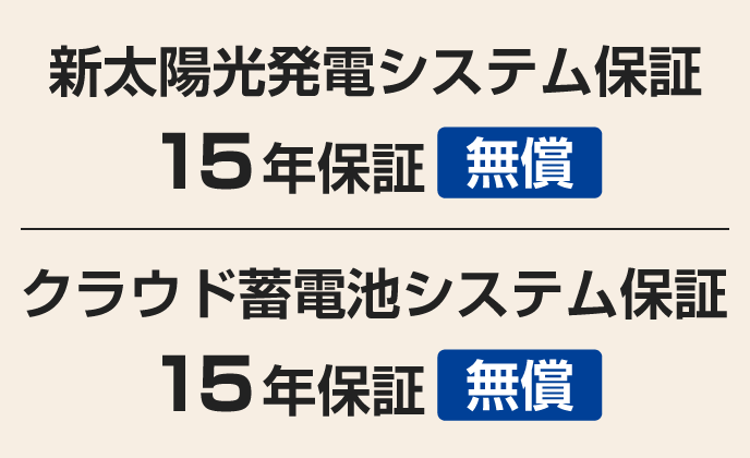 太陽光発電システム、蓄電池システムのどちらも無償の保証に申し込み可能。