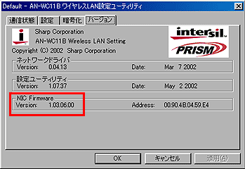 | 3. | ワイヤレスLAN PCカードのファームウェア番号を確認してください。