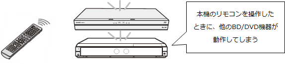 本機のリモコンを使うと、他のシャープ製BD・DVD機器が動作してしまうときは、本機のリモコン番号と他のBD・DVD機器のリモコン番号が重なっています。