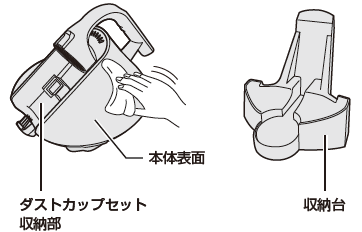 ■ 本体(表面・ダストカップセット収納部・底面)、収納台のお手入れについて