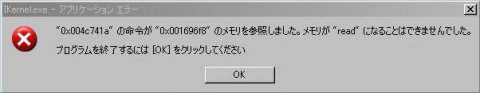 「USBドライバ」「PixLab Browser」のインストールを行ったとき、最後に表示される完了ダイアログを閉じると、次のようなエラーダイアログ(iKernel.exe - アプリケーションエラー)が表示される場合があります。