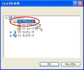 右の図で示しているように、ツリービューのなかにある「デスクトップ」をクリックしてください。