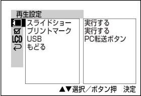 操作ボタンの▲または▼を押して「PC転送ボタン」を選び、操作ボタンの中央を押してください。