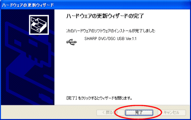 インストールが完了すると、右図のようなダイアログが表示されます。「完了」ボタンをクリックしてください。