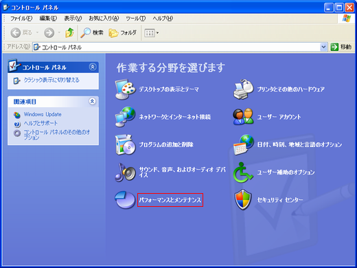 [コントロールパネル]が開きましたら[パフォーマンストメンテナンス]をクリックします。